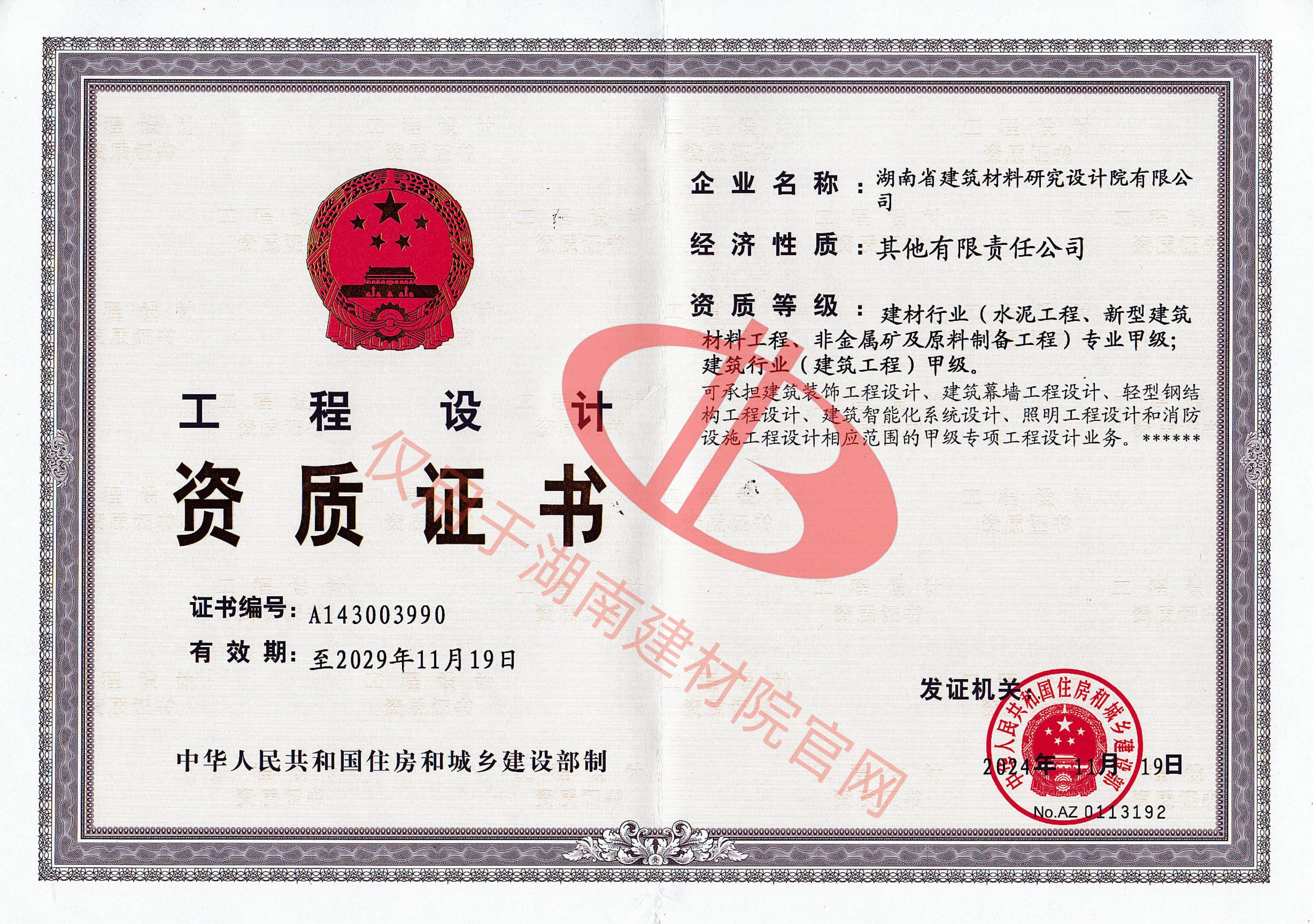 湖南省建筑材料研究設(shè)計(jì)院有限公司的前身為湖南省建筑材料研究設(shè)計(jì)院,成立于1958年,是1993年全國(guó)首批榮獲國(guó)家建材行業(yè)設(shè)計(jì)、工程總承包甲級(jí)資質(zhì)的四個(gè)科研設(shè)計(jì)單位之一。